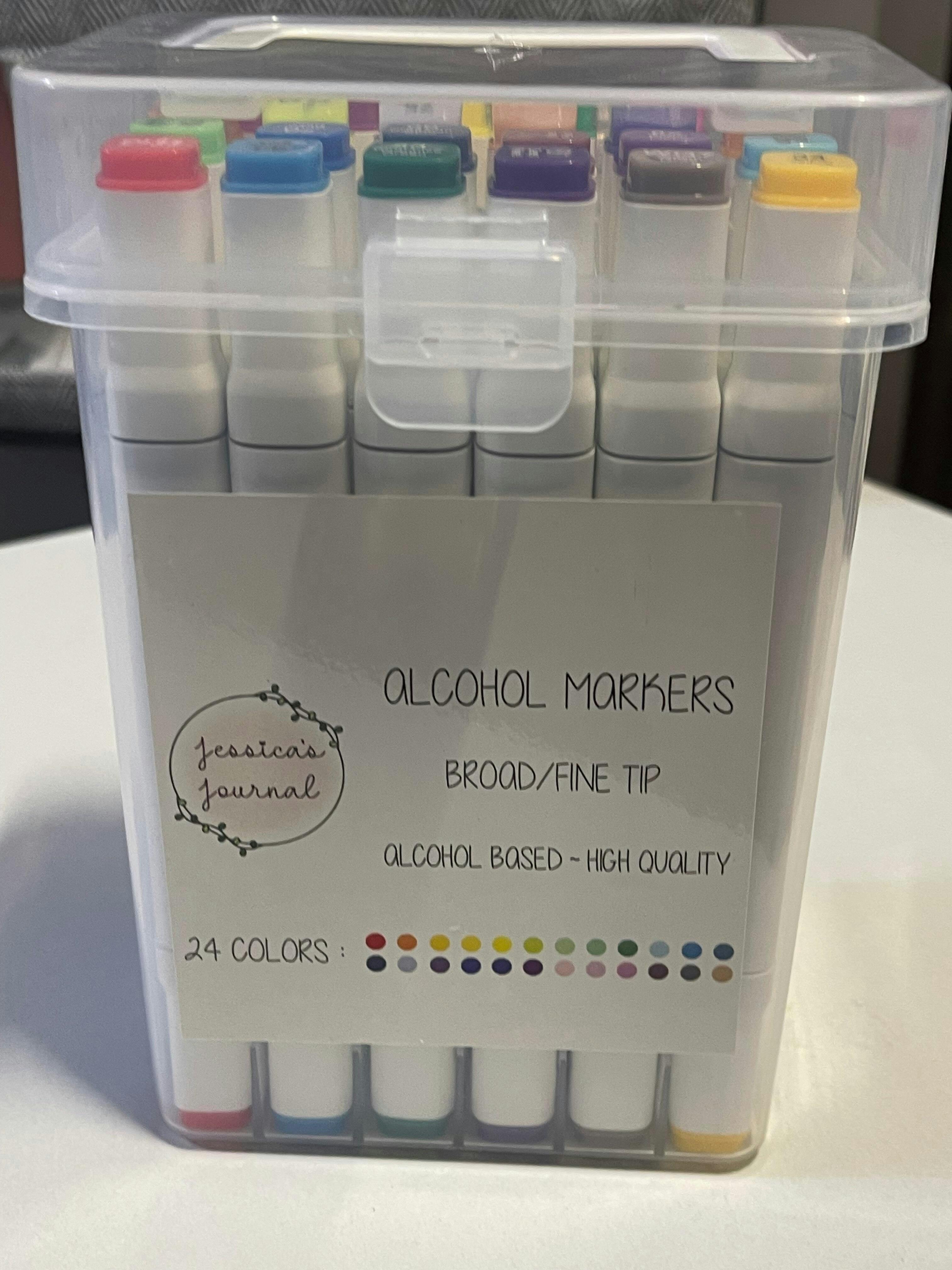 A set of 24 high-quality alcohol markers in a hard case with a handle.
